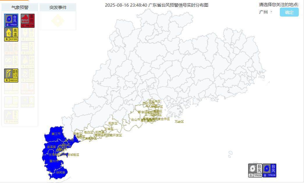 受热带低压影响,16日,广东省防汛防旱防风总设备部办公室(简称“省三防办”)印发见告,条目各地各部门,作念好现时南海热带低压防患责任。划定16日23时48分,广东已有多地发布台风预警以及雷风大雨预警。