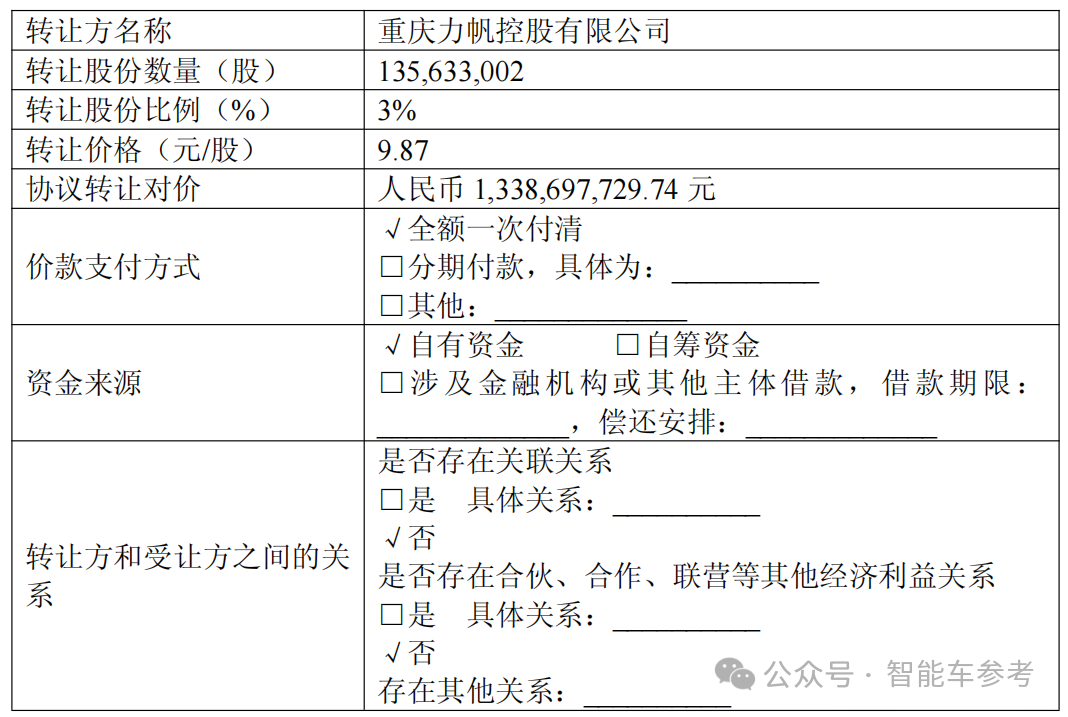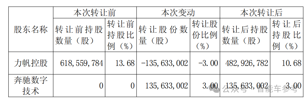 完成往复后,力帆控股的捏股比例,将从13.68%降到10.68%。
